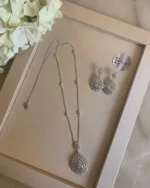 طقم قلادة بسلسلة طويلة من السعودية ودبي – مجوهرات زفاف فاخرة مرصعة بالزركونيا المكعبة للنساء