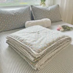 طقم لحاف صيفي بارد من القطن الخالص مكون من أربع قطع مع غطاء قابل للتهوية من ألياف فول الصويا والدانتيل
