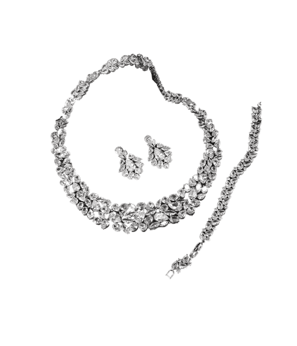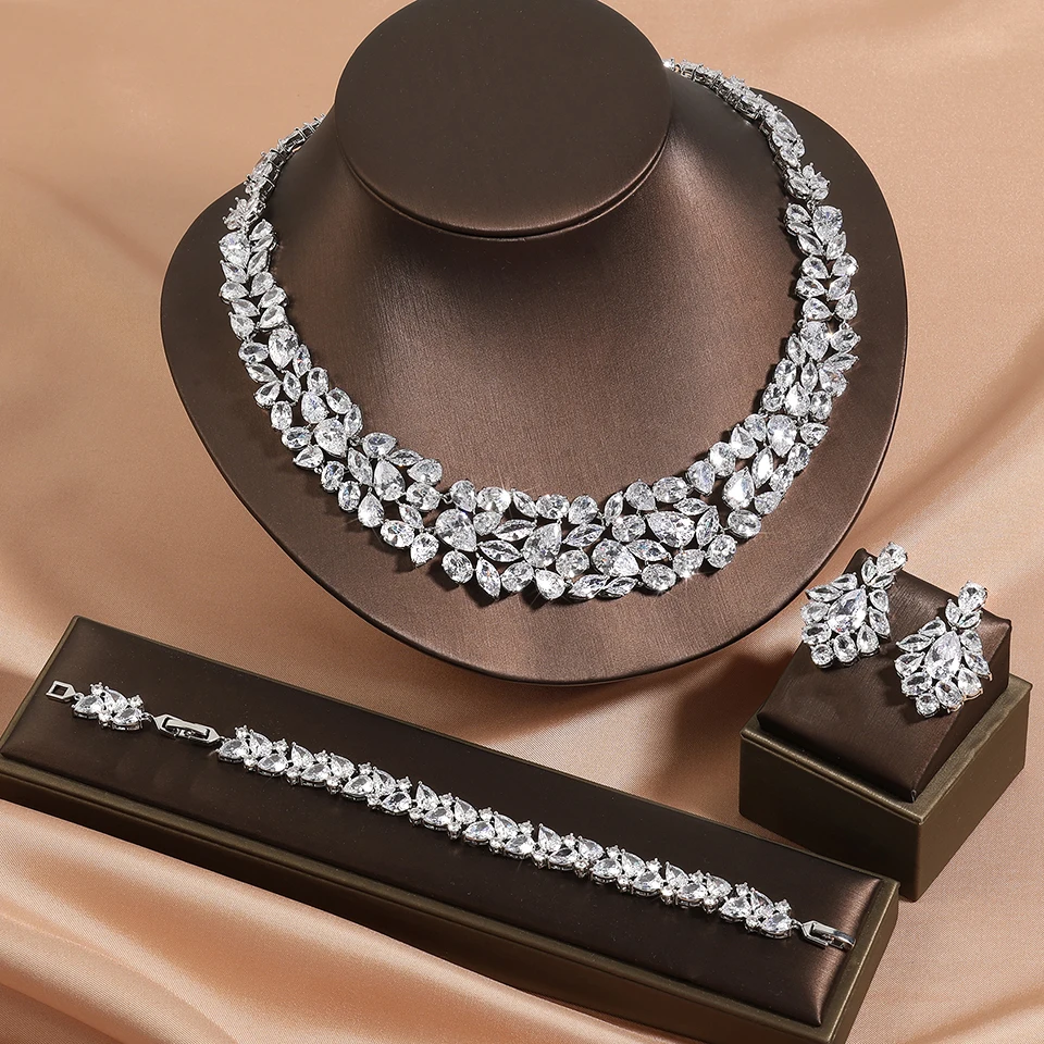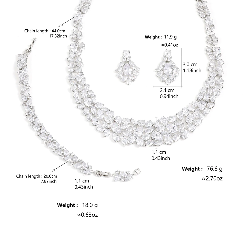 طقم مجوهرات فاخر من الزركونيا المكعبة البيضاء – قلادة وأقراط للزفاف