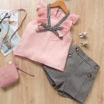 طقم مكون من قطعتين: بلوزة قصيرة مكشكشة بنقشة مربعات مع حمالات وشورت