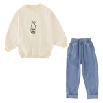 طقم ملابس بناتي مكون من بلوزة مطبوعة بنقشة البيرة وبنطال جينز، بنمط غربي