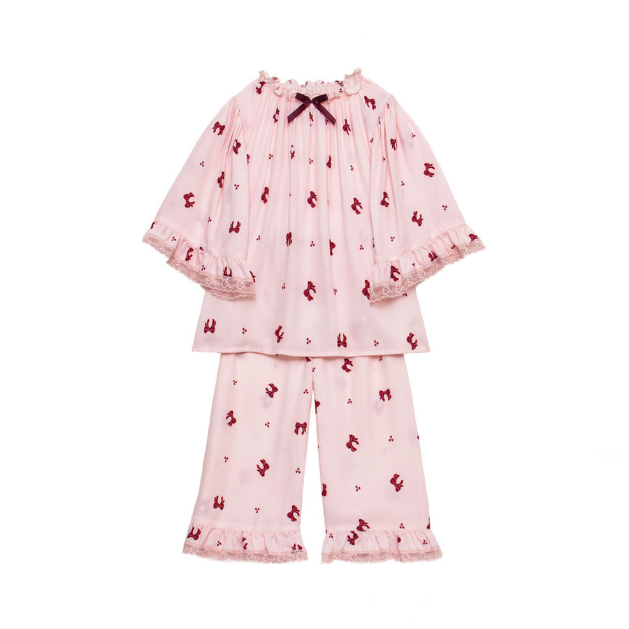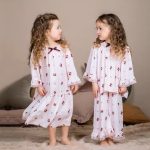 طقم ملابس منزلية للبنات من قطعتين، بأكمام طويلة وبنطال، من الدرجة الأولى