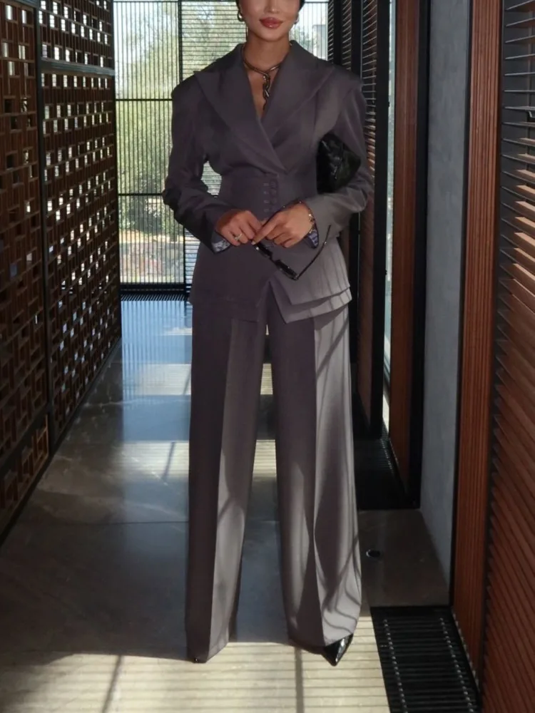 طقم نسائي من قطعتين من VTKW، بليزر بصدر واحد، خصر مرتفع، بنطال واسع الساق، بدلة كاجوال ربيع وصيف، إجازة 2025