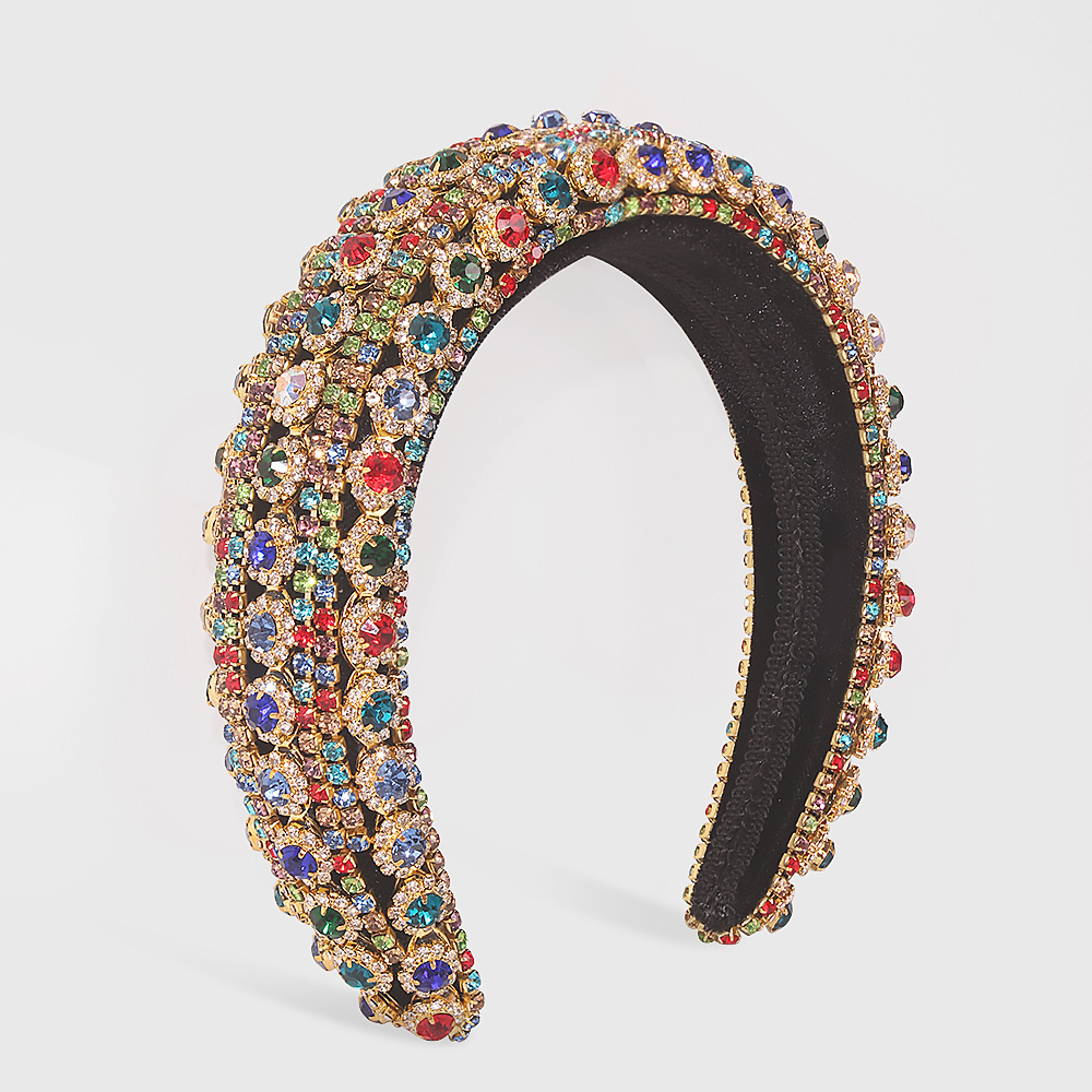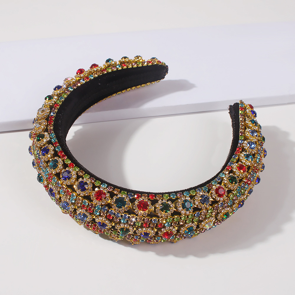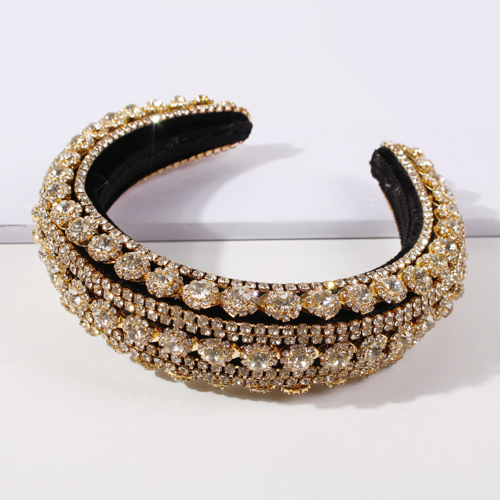 طوق رأس مرصع بالكامل بأحجار الراين الماسية، إكسسوار شعر عصري واسع الحواف من الكريستال الباروكي