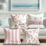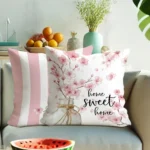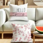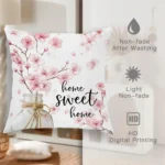 غطاء وسادة مزخرف بنقشة زهور الربيع باللونين الوردي والأبيض مناسب للأريكة والسيارة وغرفة النوم وغطاء وسادة مزخرف
