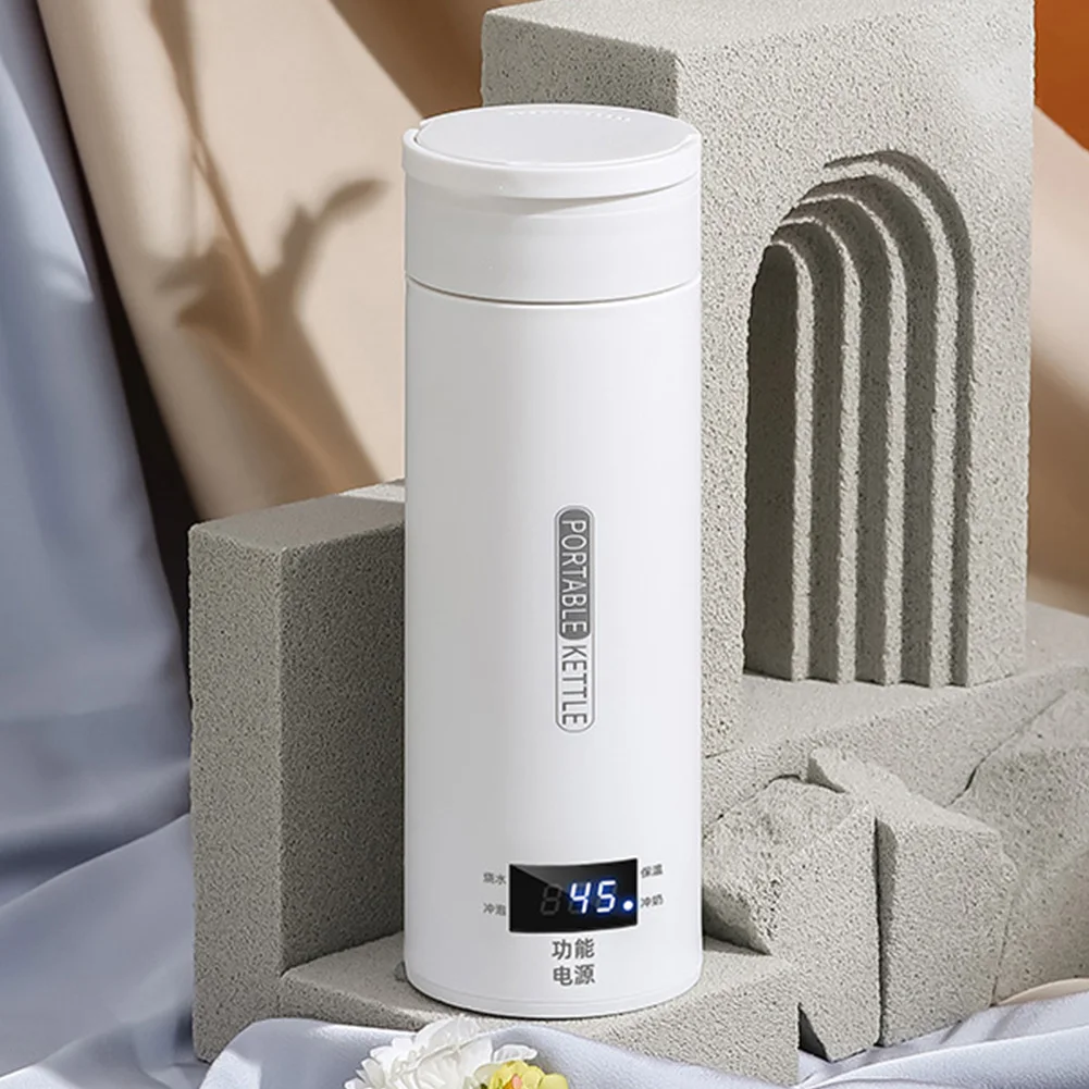 سمات: 1.Quick Boil Functionality: This portable electric kettle heats water in roughly 5 minutes, allowing you to enjoy hot beverages or meals anywhere. Say goodbye to unclean hotel kettles and savor warm drinks on your travels, work, or hotel stays. 2.Perfectly Compact Size: With a 500ml capacity, this small travel electric kettle is perfect for personal use. Its compact design fits easily into bags, ideal for car trips, business trips, and vacations, making it the perfect daily companion. 3.Double-Layer Insulation: The mini hot water boiler features a dual-layer design to ensure safety and prevent scalding. Equipped with a switch for quick heating, it automatically shuts off once heated and is leak-proof even when inverted. 4. Stainless Steel Construction: Made from corrosion-resistant 304 stainless steel, this water heater ensures long-lasting use. The lid has a vent to secure while boiling, preventing spills or splashes that can cause burns. 5.Perfect Gift Choice: This insulate travel kettle is ideal for anyone who enjoys hot water or coffee, making it a great gift for friends or moms preparing baby food. ![]() 1 × غلاية كهربائية محمولة