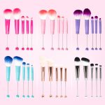 فرشاة مكياج مرصعة بالخرز بمقبض معدني، مناسبة لأدوات المكياج