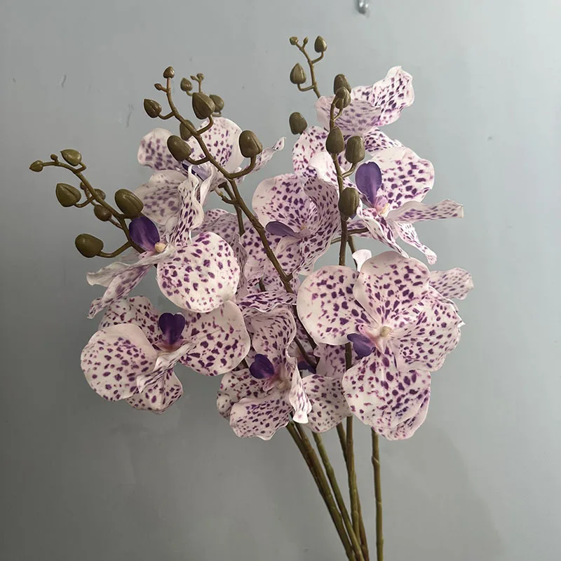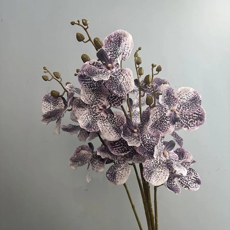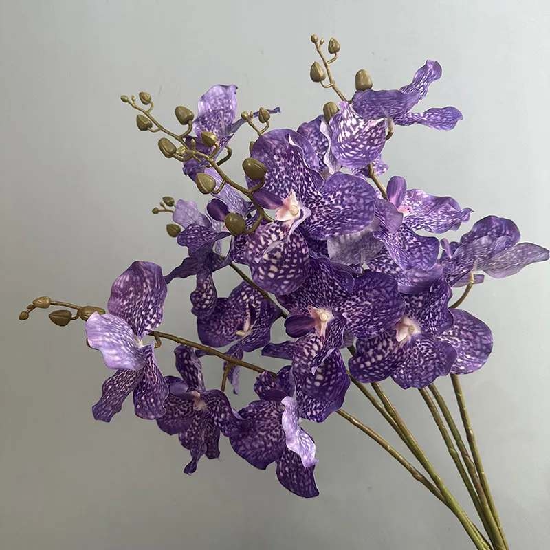 فرع زهرة أوركيد اصطناعية من الفراشات بلمسة حقيقية – زهرة أوركيد بانداي الحريرية ثلاثية الرؤوس للديكور المنزلي وحفلات الزفاف والأماكن الخارجية (بنفسجي)