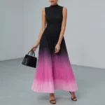 فساتين ميا ميوز النسائية الصيفية الأنيقة لعام 2025، فستان طويل بأكمام طويلة ورقبة دائرية وقصة A من التدرج اللوني