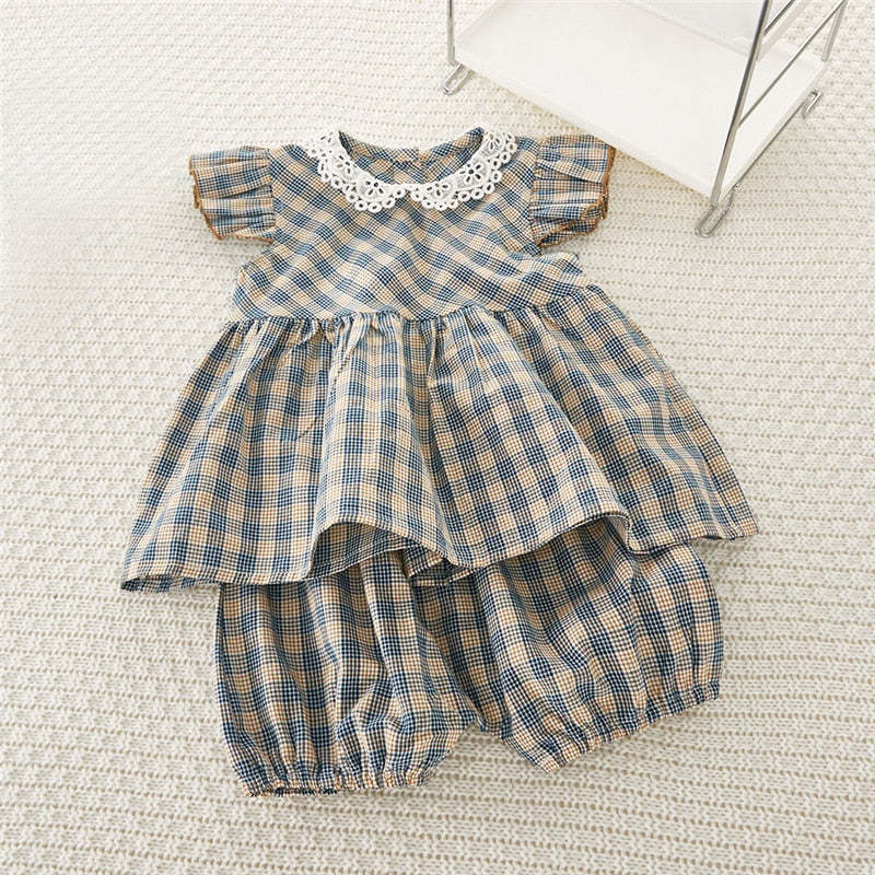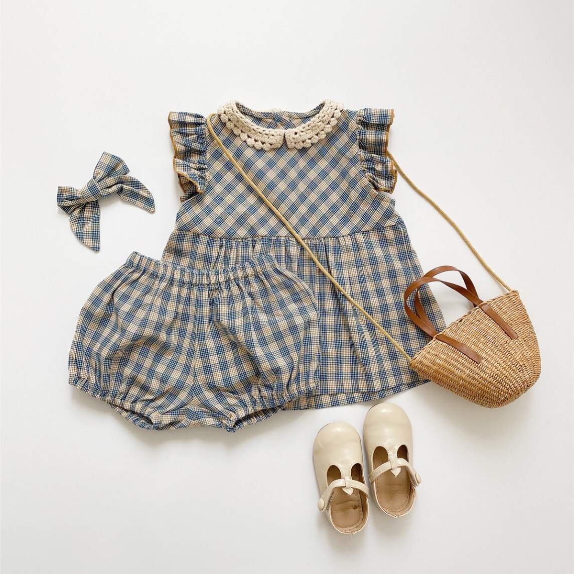 اللون: طقم BeBe Custom رمادي أزرق مربعات