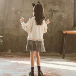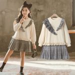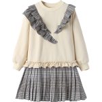 فستان بناتي كبير على الطراز الكوري مع ثنيات منقوشة
