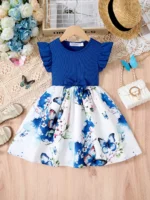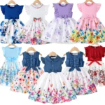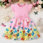 فستان صيفي على الطراز الكوري للبنات لعام ٢٠٢٥ – زيّ كاجوال لحفلات أعياد الميلاد بفيونكة مطبوعة لطيفة (من سنتين إلى ١٠ سنوات)