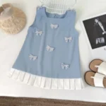 فستان صيفي غير رسمي للفتيات من Bear Leader – فستان أزرق بدون أكمام على الطراز الكوري مع تفاصيل فيونكة جميلة