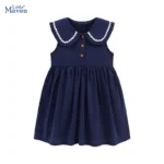 فستان ليتل مافن 2024 بتصميم أنيق للفتيات، ملابس أطفال، فساتين أطفال بدون أكمام، فستان أميرة للبنات بياقة بيتر بان