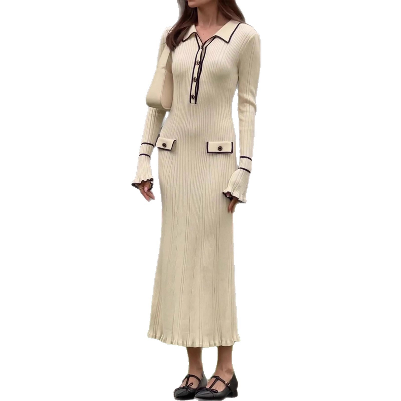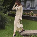 فستان محبوك أنيق بتصميم فاخر مستوحى من شانيل، يبرز جمال القوام.
