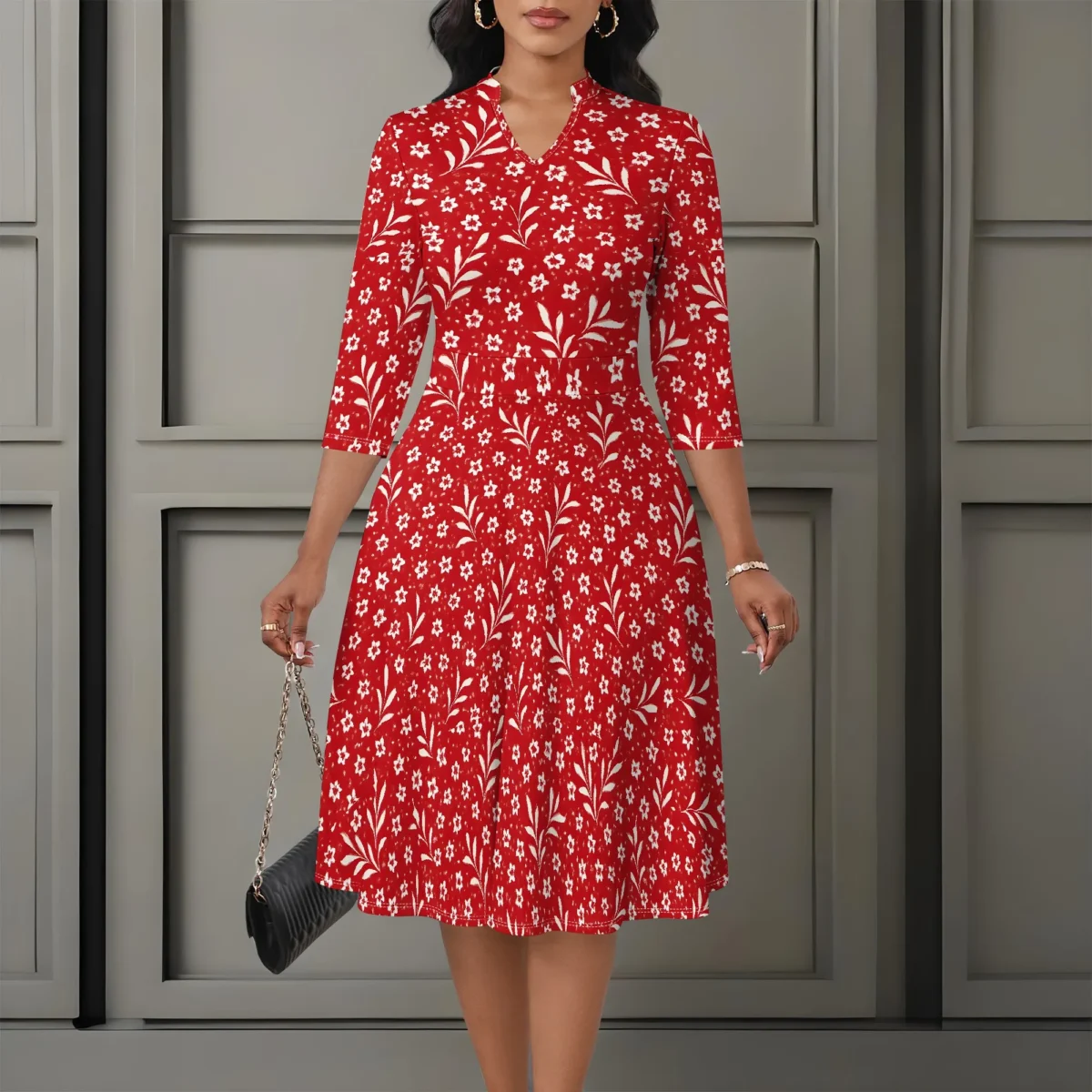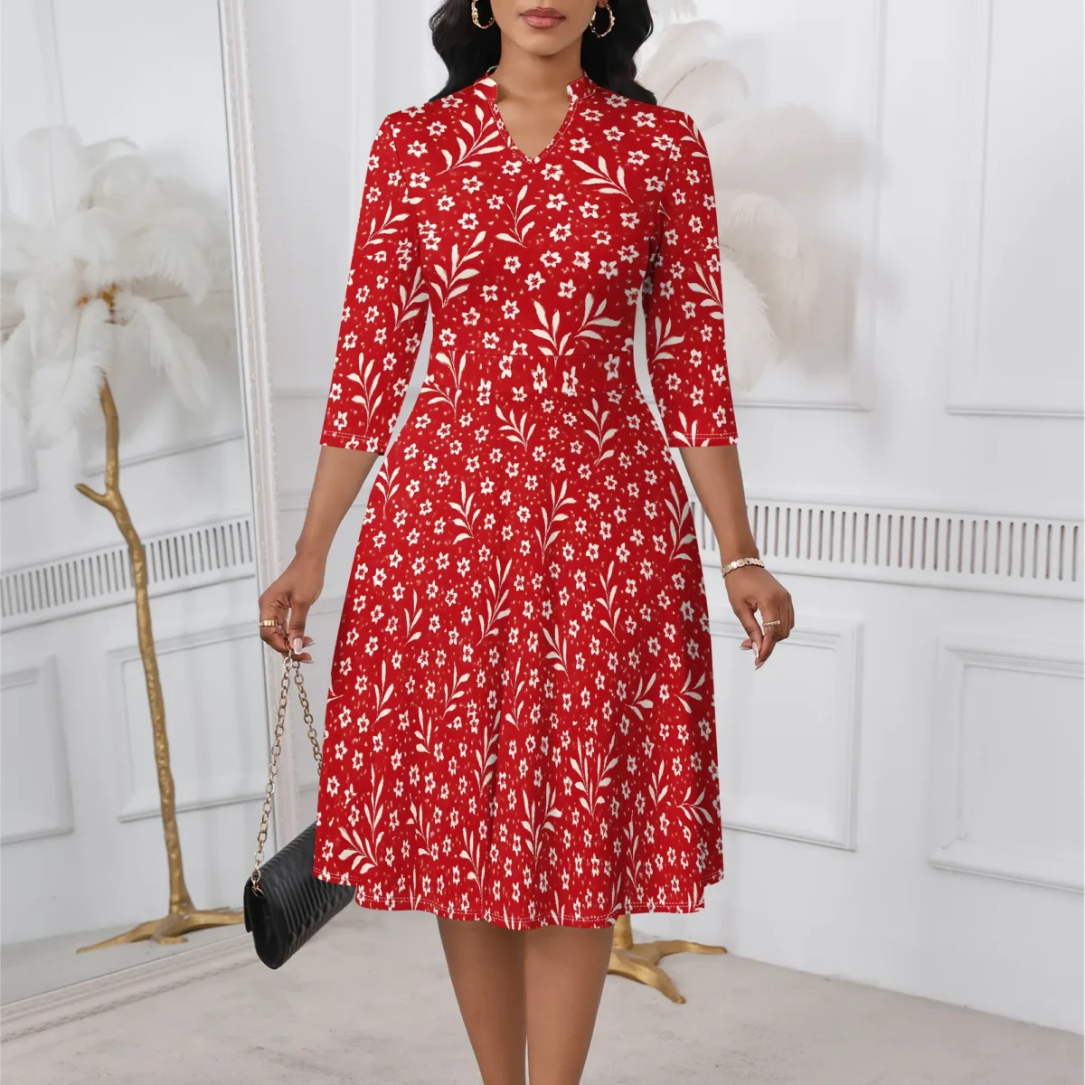 فستان ميدي نسائي بقصة A – فستان واسع بأكمام 3/4 لإطلالة يومية أنيقة