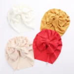 قبعة عمامة محبوكة على شكل أرنب للأطفال – قبعة مرنة مضلعة لحديثي الولادة والأطفال الصغار (0-4 سنوات)