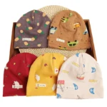 قبعة قطنية محبوكة بنقشة ديناصور للأطفال | قبعة بيني كرتونية للأولاد والبنات (من الربيع إلى الشتاء)