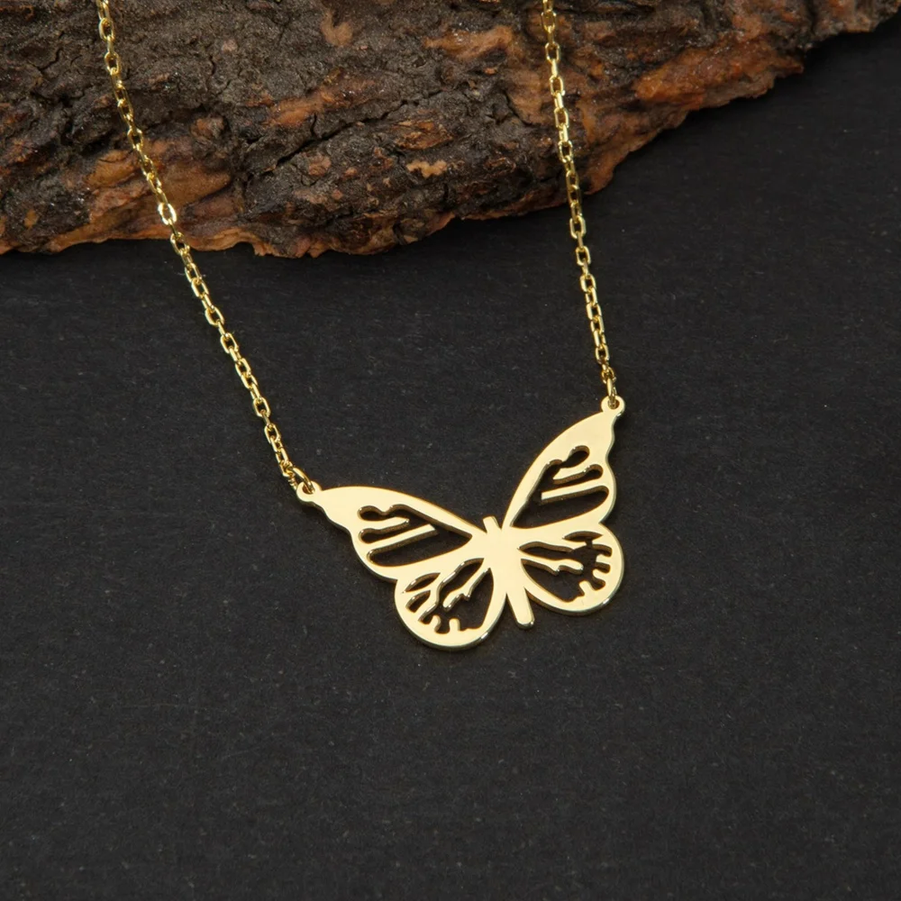 قلادة الفراشة من ميدفولي – سلسلة من الفولاذ المقاوم للصدأ مطلية بالذهب عيار 18 قيراطًا للنساء