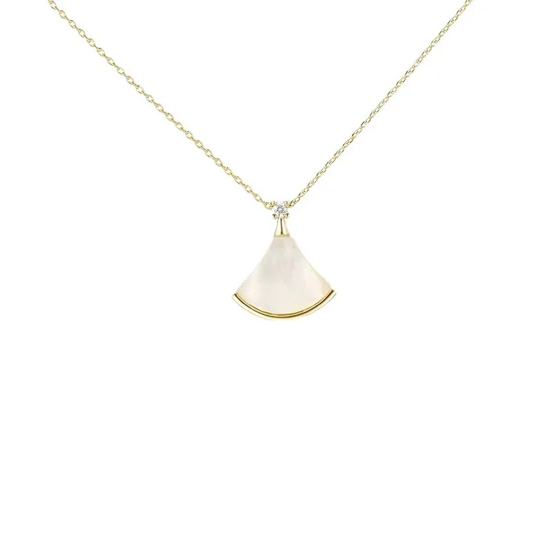قلادة ذهبية على شكل مروحة هندسية – سلسلة صيفية بسيطة للنساء
