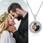 قلادة صور مخصصة – قلادة شخصية من الزركونيوم المكعب مع سلسلة من الفولاذ المقاوم للصدأ قابلة للتعديل