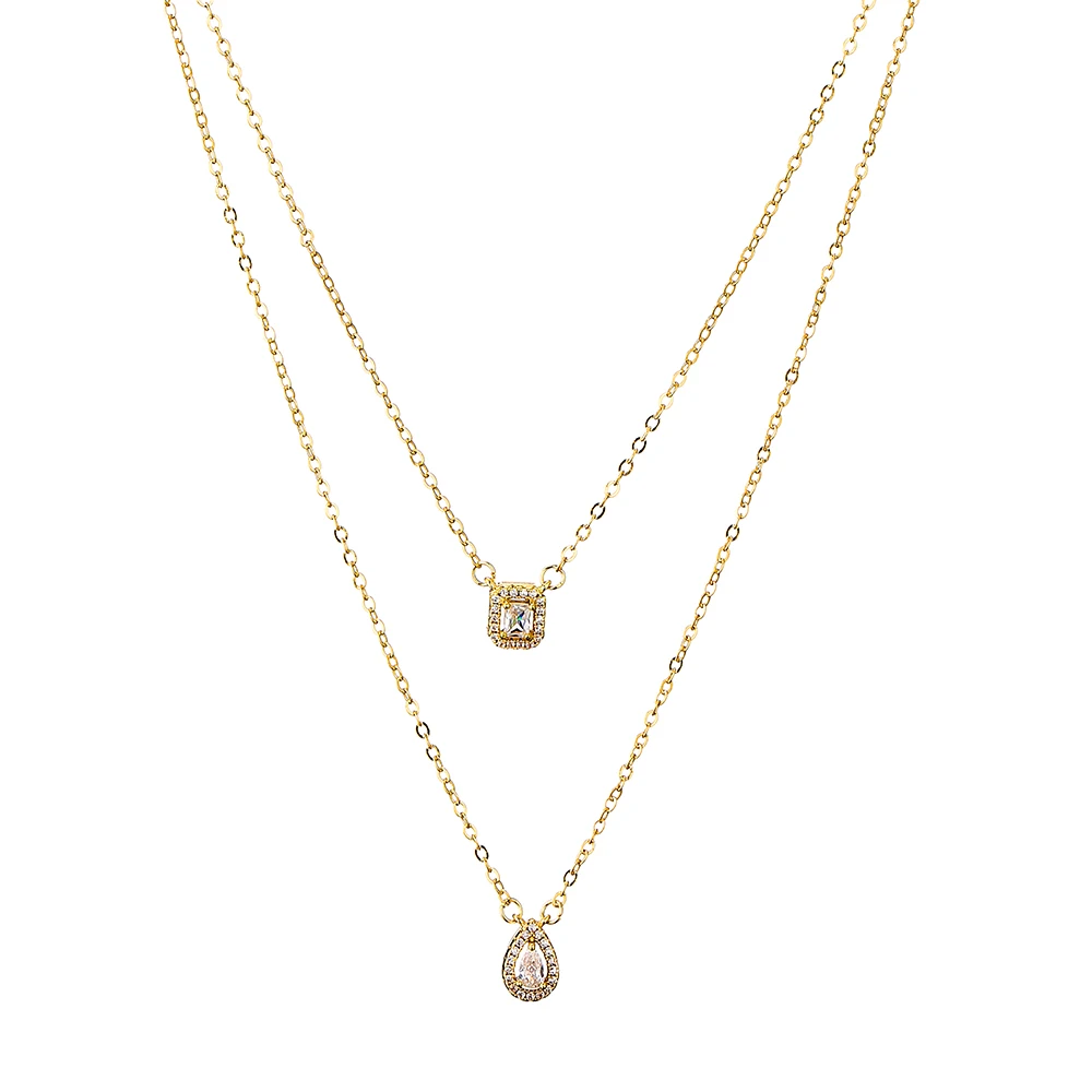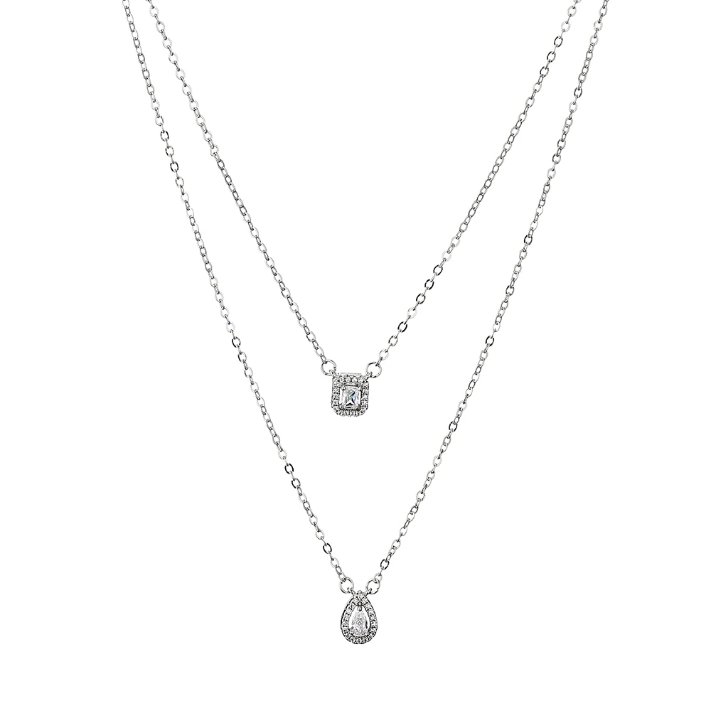 قلادة فاخرة من الفضة مرصعة بالزركون AAA مكونة من طبقتين – قلادة أنيقة للنساء