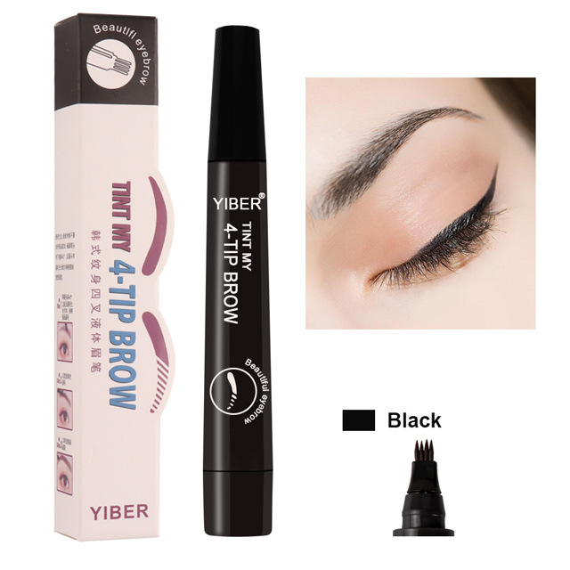 قلم رسم الحواجب YIBER قلم حواجب مزدوج الرأس بأربعة رؤوس سائلة سميكة متعددة الألوان مضادة للألوان المائية قلم حواجب مصبوغ يدوم طويلاً