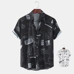 قمصان رجالية كاجوال جديدة عبر الحدود، قمصان بأكمام قصيرة مطبوعة برسومات جرافيتي، قمصان رجالية بياقة طية صدر
