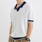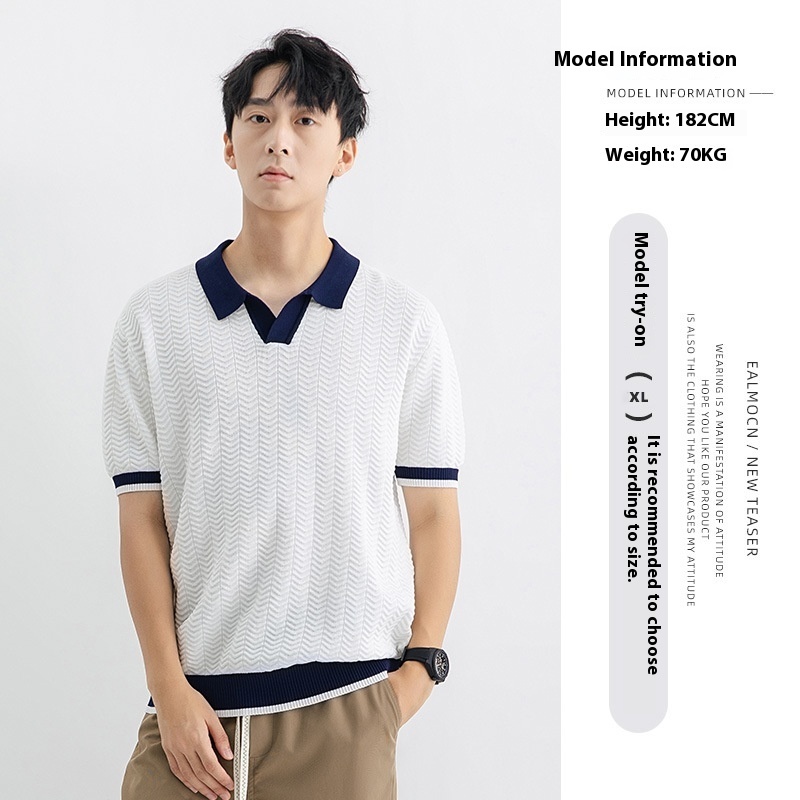 قميص بولو رجالي من الحرير الجليدي عالي الجودة بأكمام قصيرة تي شيرت صيفي