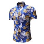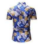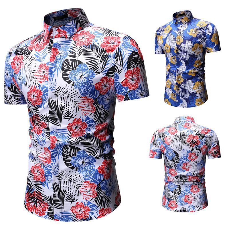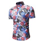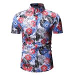 قميص رجالي صيفي قصير الأكمام مزين بنقشة زهور للشاطئ
