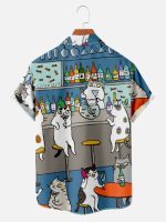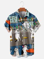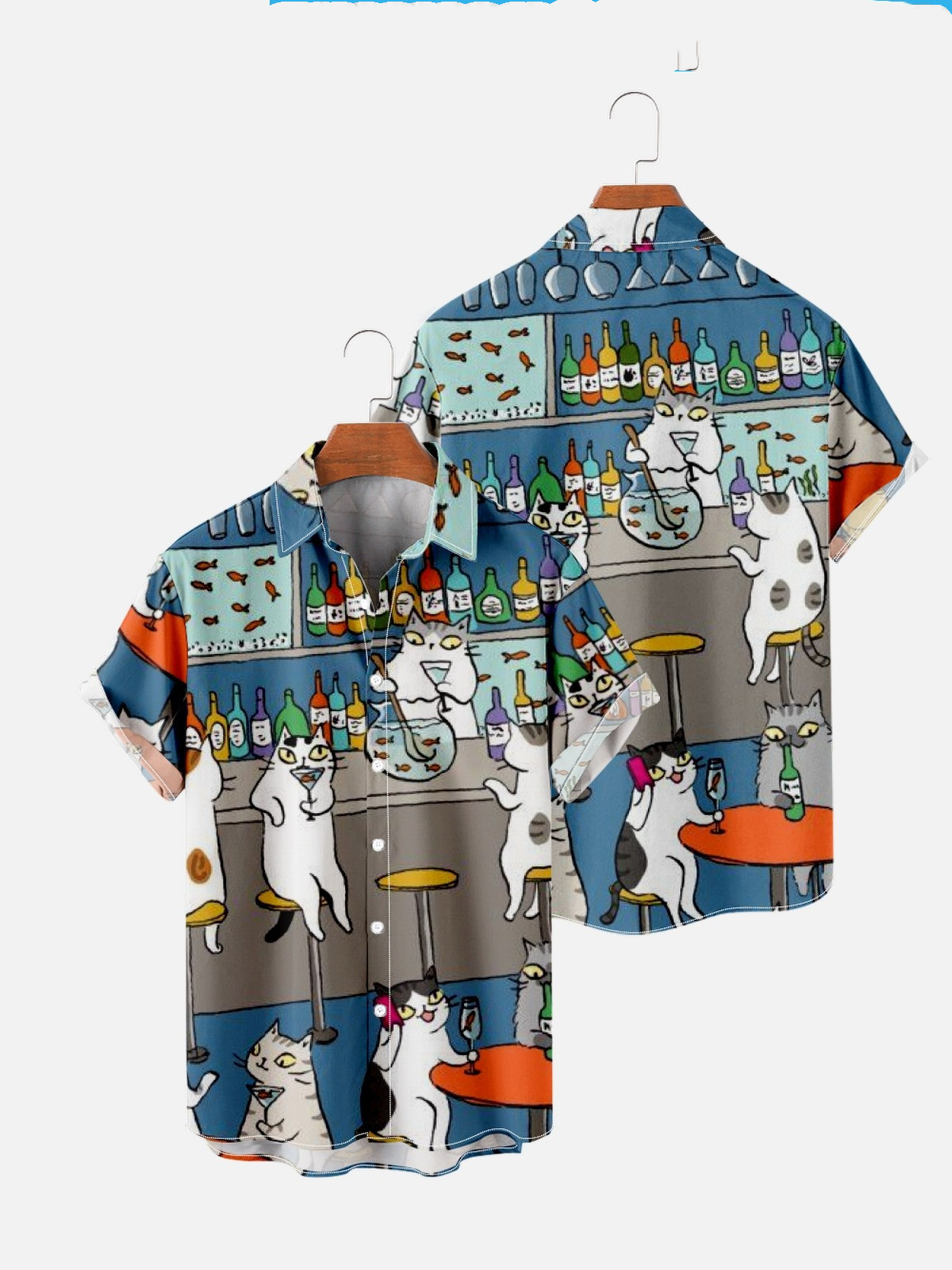 قميص رجالي فضفاض بأكمام قصيرة مطبوع عليه عناصر استوائية إبداعية لعطلة الصيف