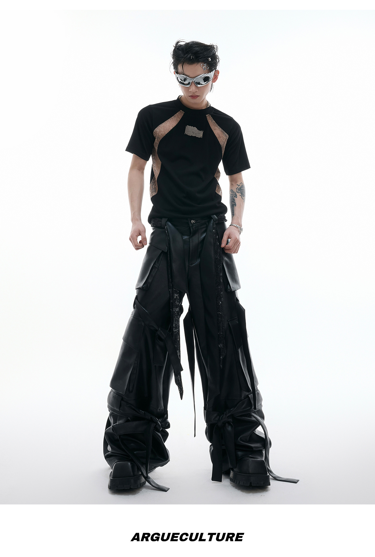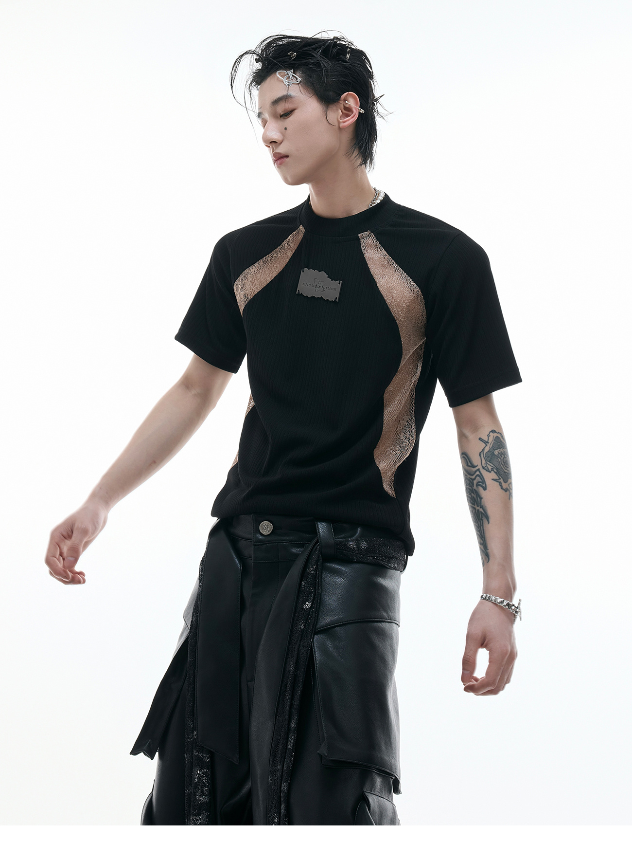 قميص Niche Deconstruction Contrast Color Retro بأكمام قصيرة وقصة ضيقة وبطانة من نسيج Pit