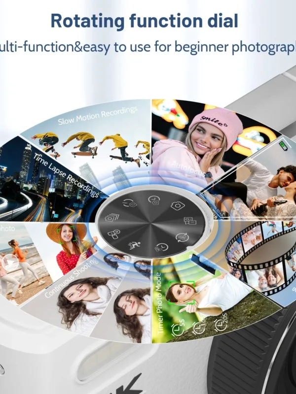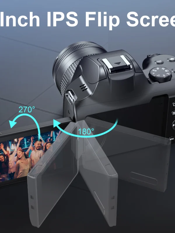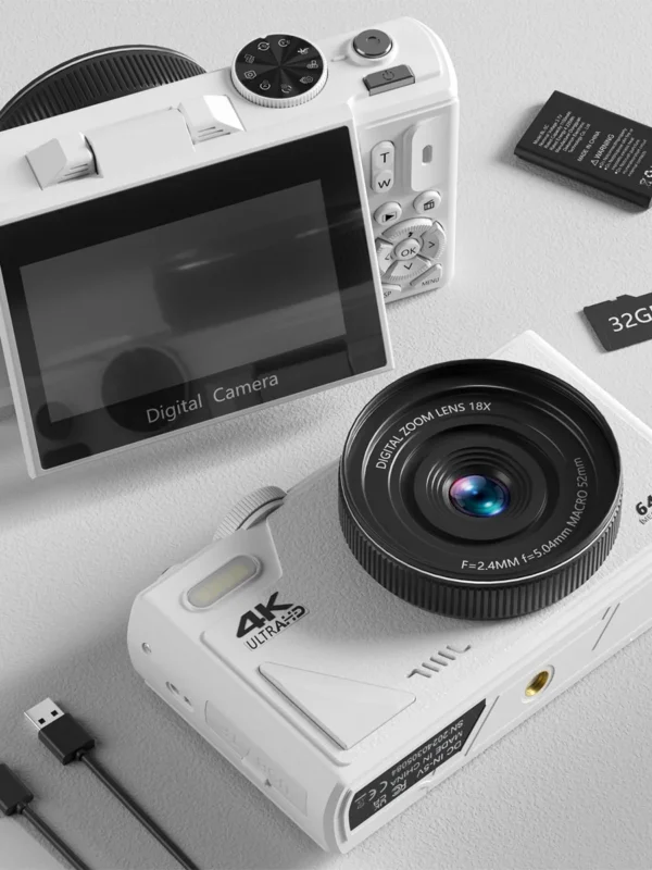 كاميرا تصوير رقمية مدمجة بدقة 4K وتقريب رقمي 18X ومسجل فيديو قديم وشاشة قلابة 180 درجة وكاميرا ويب واي فاي