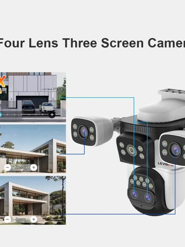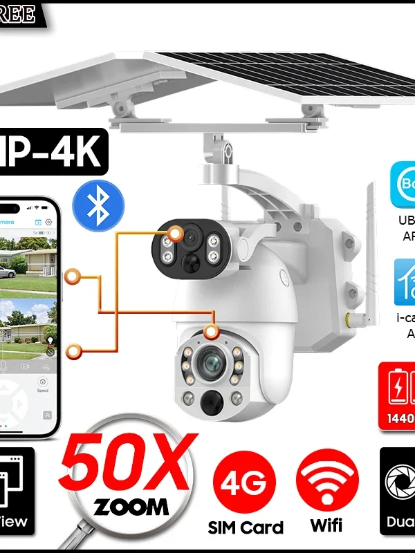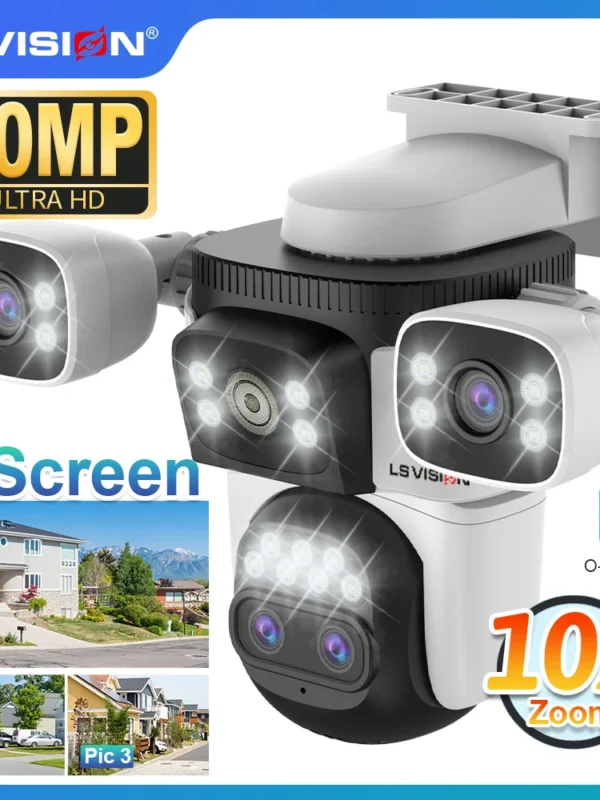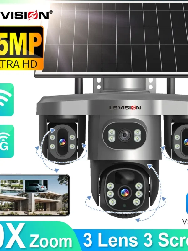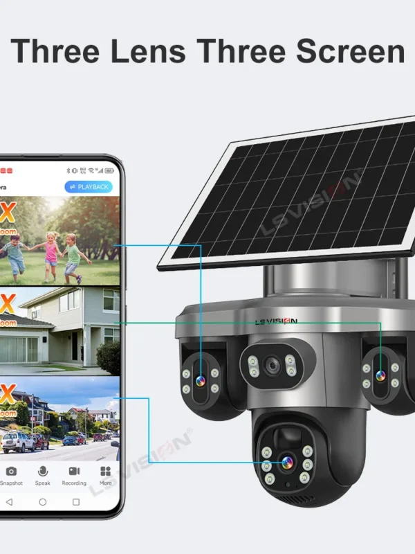 كاميرا تعمل بالطاقة الشمسية 4G Sim خارجية 3 عدسات 3 شاشات تكبير 10 مرات PIR كاميرات كشف الإنسان مقاومة للماء رؤية ليلية CCTV حماية أمنية