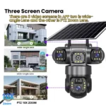 كاميرا تعمل بالطاقة الشمسية 4G Sim خارجية 3 عدسات 3 شاشات تكبير 10 مرات PIR كاميرات كشف الإنسان مقاومة للماء رؤية ليلية CCTV حماية أمنية
