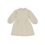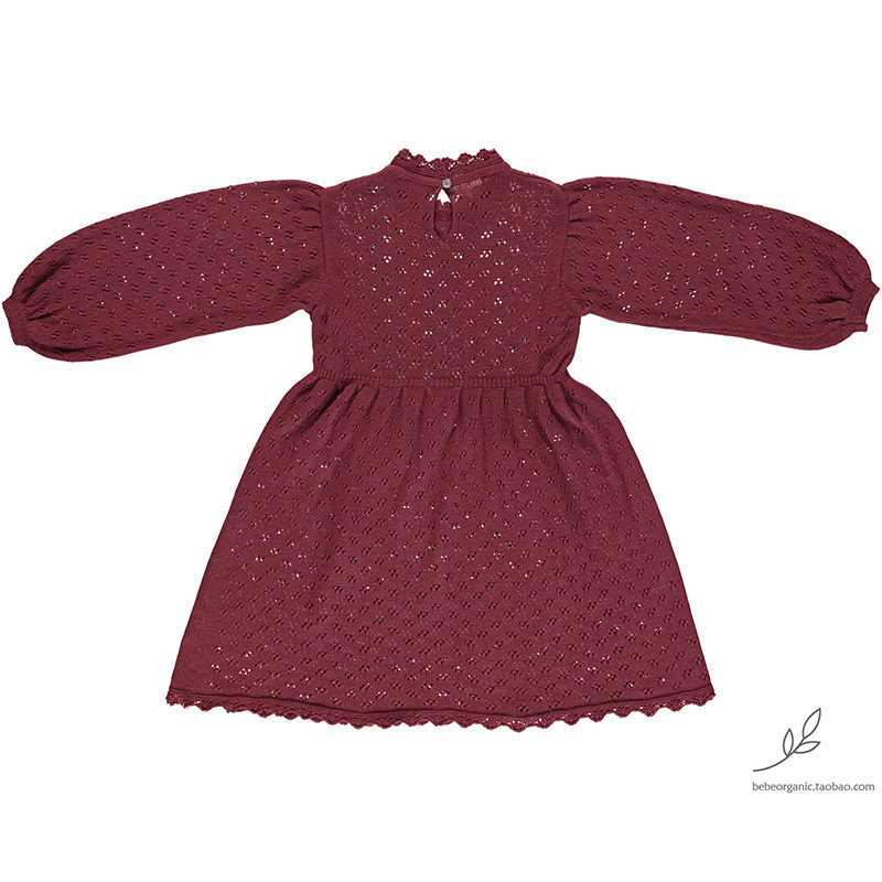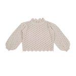 كنزة أطفال بياقة دائرية مزينة بالدانتيل، كنزة محبوكة بأكمام منفوخة