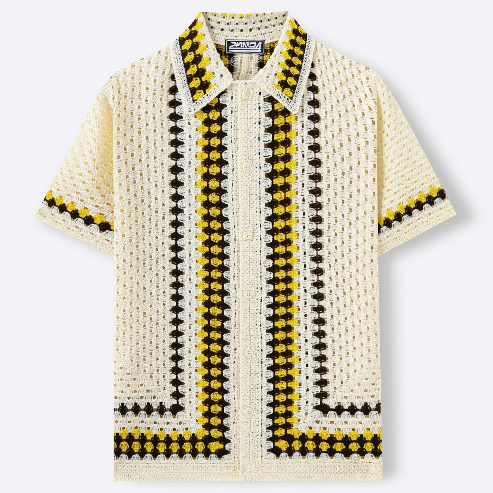 كنزة رجالية محبوكة مخططة مفتوحة الظهر بتصميم مجوف