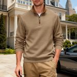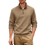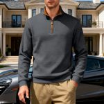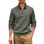 كنزة شتوية رجالية فضفاضة، ثقيلة الوزن، بياقة عالية وسحاب، مناسبة للعمل غير الرسمي، بنقشة مربعات.
