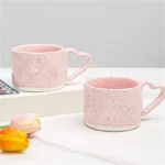 كوب سيراميك على الطراز الكوري 300 مل بمقبض على شكل حب وردي، كوب قهوة، كوب حليب الشوفان، كوب ماء، هدية عيد الحب