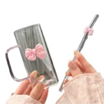 كوب قهوة مثلجة مع ماصة زجاجية لطيفة