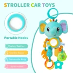 لعبة حسية ناعمة معلقة – قطيفة مجعدة مع عضاضة لعربة الأطفال ومقعد السيارة وسرير الأطفال