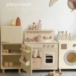 لعبة مطبخ خشبية على الطراز الاسكندنافي للبنات، محاكاة موقد طبخ، بيت لعب للأطفال، بيت دمى واقعي للعب التظاهري