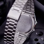 مجموعة ساعات كاسيو الرقمية LED الفضية للرجال – ساعة يد عسكرية رياضية فاخرة مقاومة للماء من الكوارتز