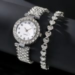 مجموعة ساعات نسائية فاخرة من قطعتين من مجوهرات الأزياء بحزام فضي وساعة كوارتز للسيدات وسوار من السبائك المعدنية للسيدات مجموعة مجوهرات هدية