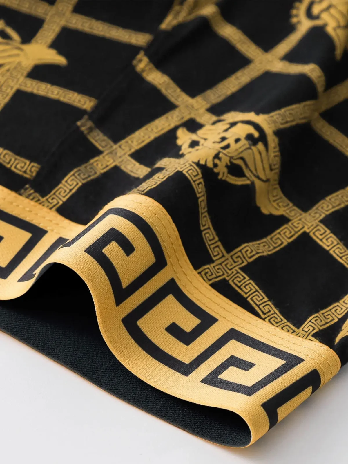 مجموعة ملابس داخلية رجالية مكونة من 8 قطع ناعمة ومريحة وعالية الجودة للرجال سراويل بوكسر سوداء وذهبية مهيمنة للبيع