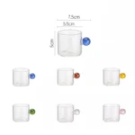 مجموعة من 6 أكواب زجاجية بمقبض ملون للمشروبات الساخنة والباردة | أكواب زجاجية شفافة للإسبريسو والكابتشينو واللاتيه والشاي والحليب