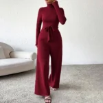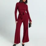 مجموعة ميا ميوز الصيفية الأساسية الأنيقة ذات اللون الواحد ذات الأربطة والأكمام الطويلة والرقبة العالية والكاحل المستقيمة، مجموعة ملابس الشارع للنساء