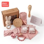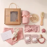 مجموعة هدايا لحديثي الولادة – منشفة ناعمة + بطاقات إنجازات + خشخيشة + إكسسوارات تذكارية | أدوات تصوير ومجموعة ذكريات شهرية