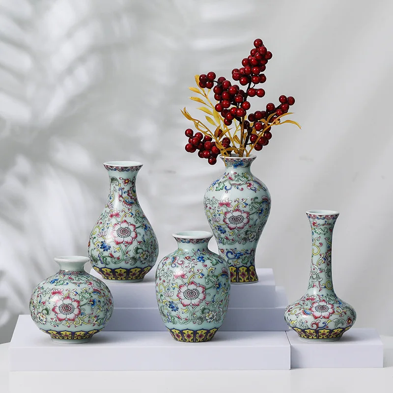 مزهريات خزفية ملونة بالمينا على الطراز الصيني باللونين الأزرق والأبيض، أعمال فنية مكتبية، ديكورات منزلية مبتكرة وبسيطة