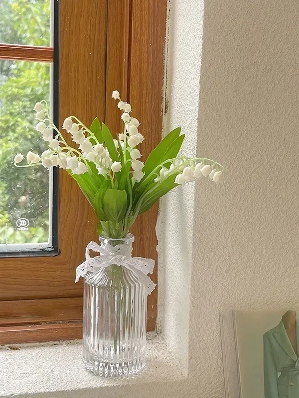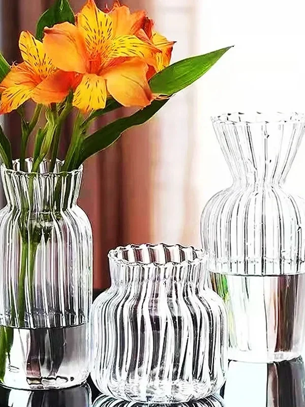 مزهرية زجاجية نورديك بقاعدة خشبية – ديكور أنيق للطاولة والزهور